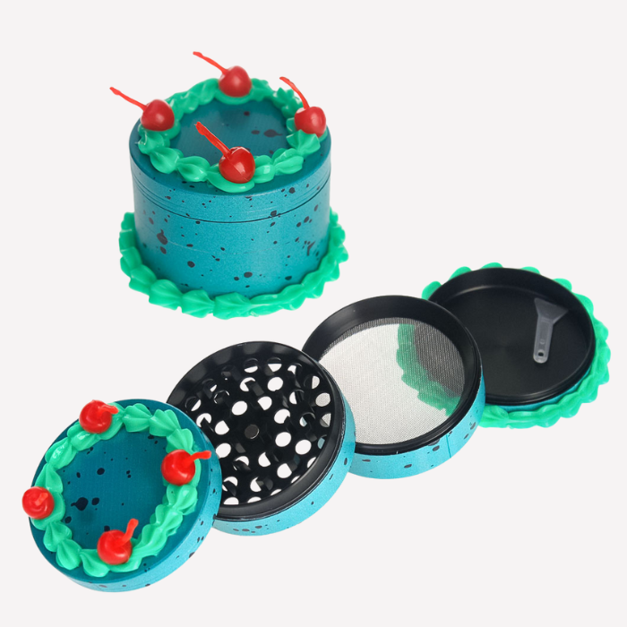 Teal Cherry Cake 3d Hand Painted 3 Stage Grinder 2″