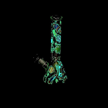 420 Leaf Glow In The Dark Hand Painted Glass Bong 12″