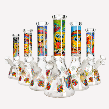 Multicolour Mushroom Spongebob Decals Glass Bong 15″