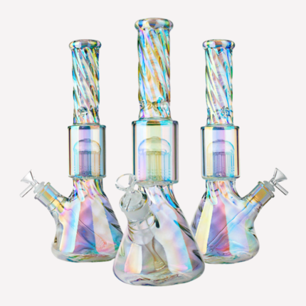 Holographic Rainbow 10 Arms Perc Ice Catcher Glass Bong 14″