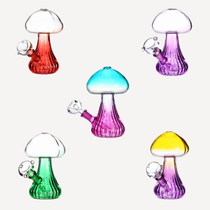 Colourful Drippy Mushroom Glow In The Dark Glass Bong 7″