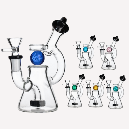 Spinning Blue Marble Planet Showerhead Perc Glass Dab Rig 6.5″