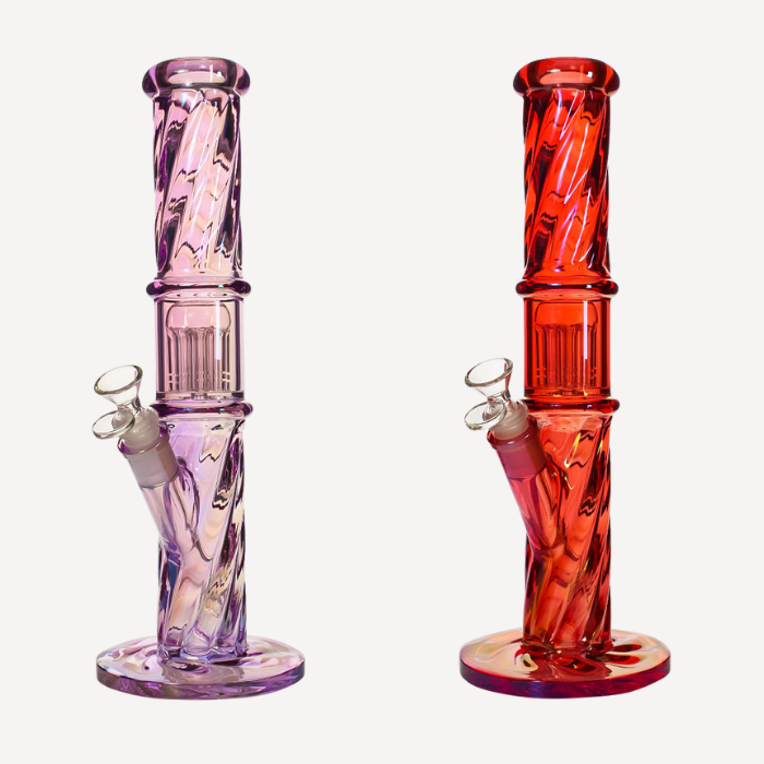 Bright Colour Twist 8 Arm Tree Perc Glass Bong 14″