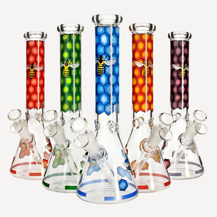 Bright Colour Honey Comb and Bee Design Glass Bong 11″